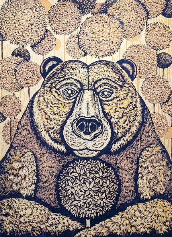 For those who haven’t previously encountered Lee’s whimsical and impressively detailed work, this show is a fine introduction. It includes one of the printmaker’s best known prints, “Whisper and Wait,” in which a group of delicately haired rabbits contemplate a moon that appears as fuzzy as they are. Lee writes that her work depicts “competition in our society” and “the pressures of survival.” Yet her animals are so lovingly rendered that they seem to be enjoying charmed lives.