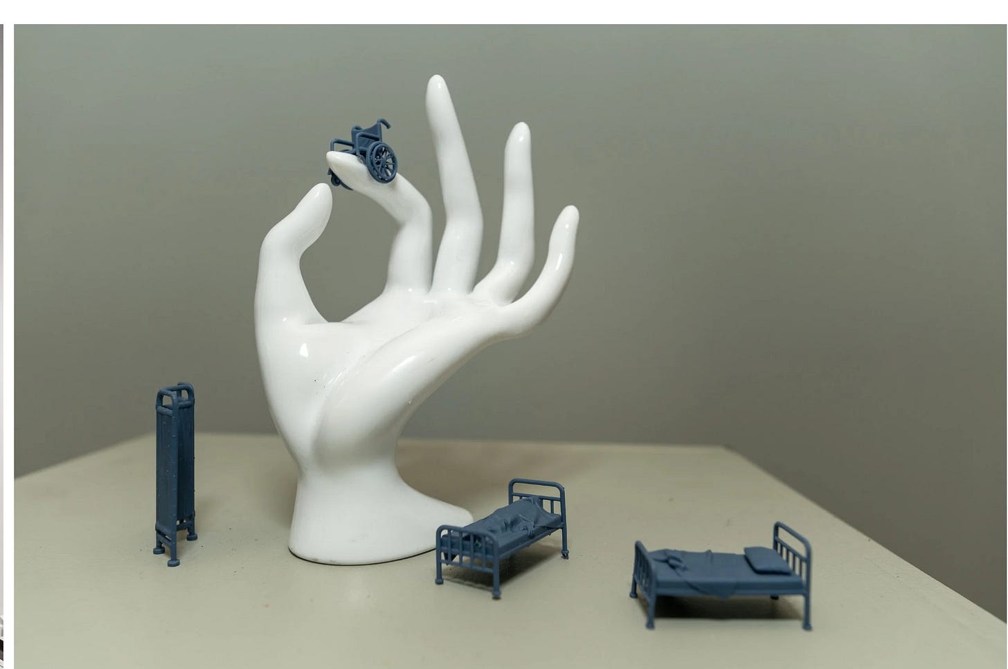 A SHAMEFUL LEGACY OF NEGLECT is the difficult subject of Trisha Gupta’s “Haven,” an array of photos, drawings, and artifacts at VisArts. The D.C.-based Gupta, who describes herself as “a neurodivergent artist and medical professional,” has been investigating the buildings and grounds of Forest Haven Asylum, a defunct facility in suburban Maryland for people with intellectual disabilities. Notorious for physical and sexual abuse and hundreds of unexplained deaths, Forest Haven was closed by a judge’s order in 1991.