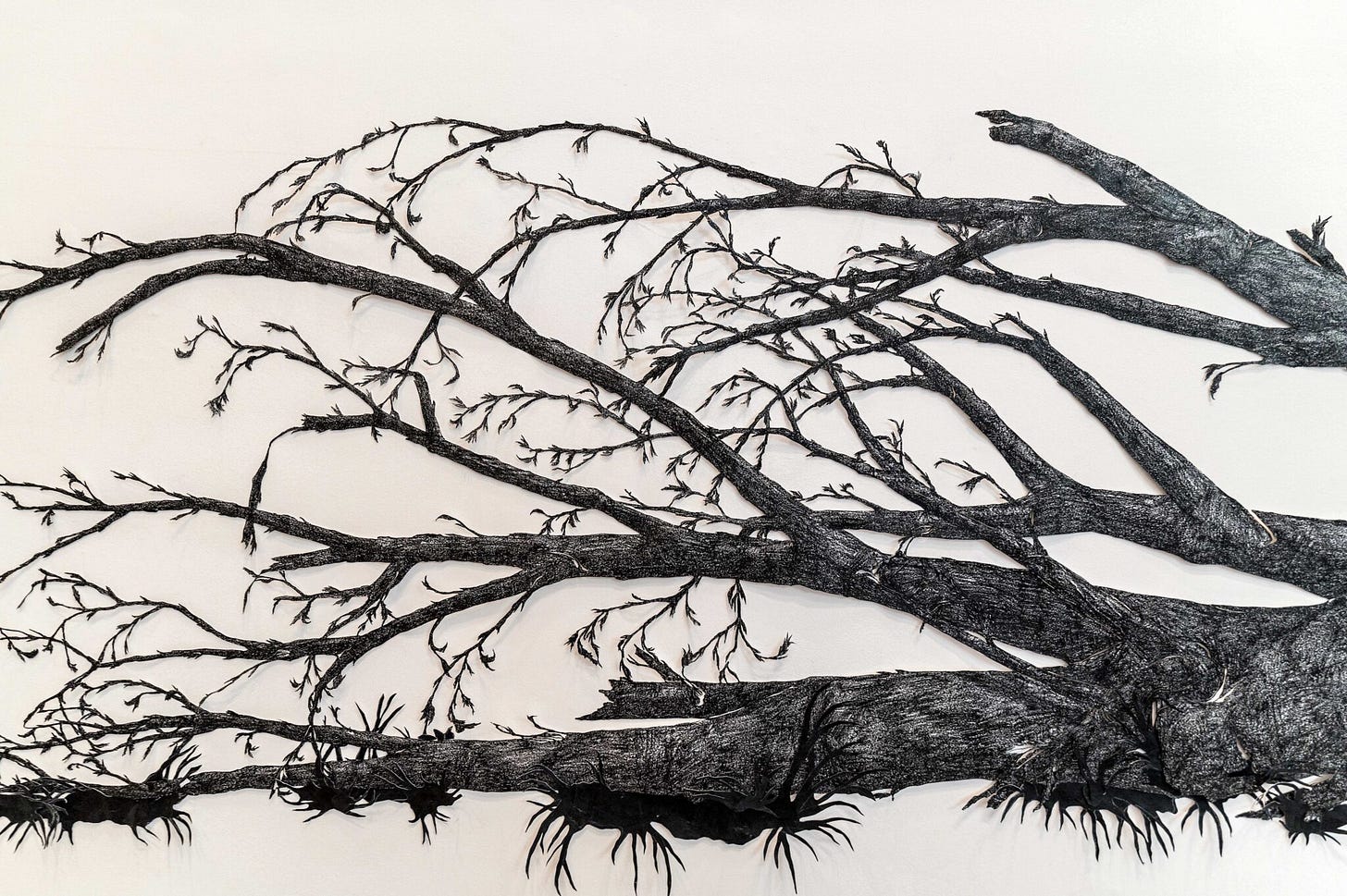 The artist's inspiration is the interconnectedness of trees, which she likens to human entanglements. So it's fitting that all the artworks seem to be of a piece. Even a stump, just a remnant of a living tree, is somehow linked to the whole.