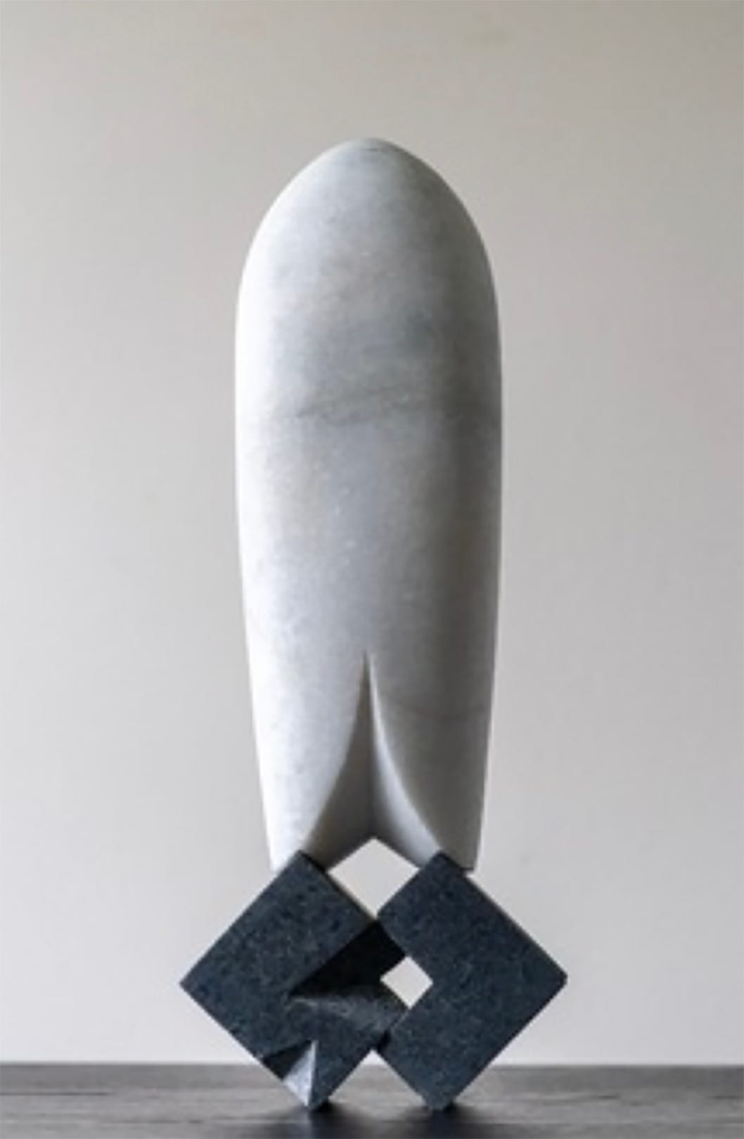 Among the more streamlined pieces are one by Lisa Battle in which mirrored stoneware forms partly overlap; an elongated diamond made of burnished and painted mild steel by Gilbert Ugiansky; and Cristian Ianculescu's "Rocket," made of two types of stone and suggesting -- like so many of the show's entries -- an untold story.